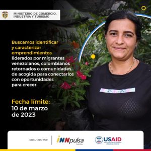 COLOMBIA (Febrero 16 de 2023). iNNpulsa Colombia y el programa Oportunidades Sin Fronteras de USAID Colombia, tomaron la iniciativa de Oportunidades para Emprender, que tiene el objetivo de identificar emprendimientos por población migrante proveniente de Venezuela, para conocer su condición actual y sus necesidades puntuales en temas de emprendimiento.